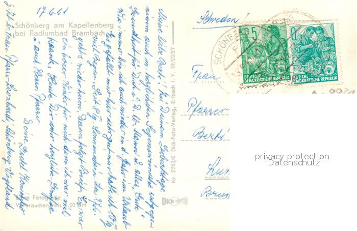 43346452 alte Postkarte Schoenberg Bad Brambach Kapellenberg postalisch gelaufen Erhaltung siehe scans [KathaD81] KatCode: 11110014178040