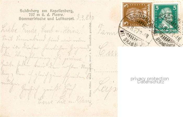 73802203 alte Postkarte Schoenberg Bad Brambach Panorama Ort am Kapellenberg Baumbluete postalisch gelaufen Erhaltung siehe scans [FriedD77] KatCode: 11110014178040