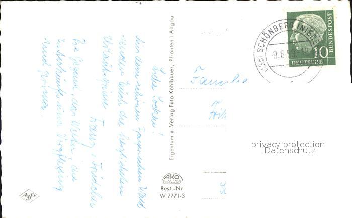 alte Postkarte Schoenberg Bayerischer Wald Kriegerdenkmal Kirche Brunnen Strassenpartie postalisch gelaufen Erhaltung siehe scans
