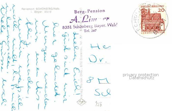 72786789 alte Postkarte Schoenberg Bayerischer Wald Lusengipfel Kreuz Rachelgipfel Kapelle Martinsklause Waldhaeuser postalisch gelaufen Erhaltung siehe scans [FriedD77] KatCode: 11110009272147