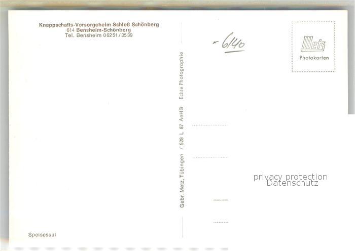 42910506 Schoenberg Bensheim Knappschafts Vorsorgeheim Schloss Schoenberg Speisesaal postalisch nicht gelaufen Erhaltung siehe scans [KathaD81] KatCode: 11110006431002