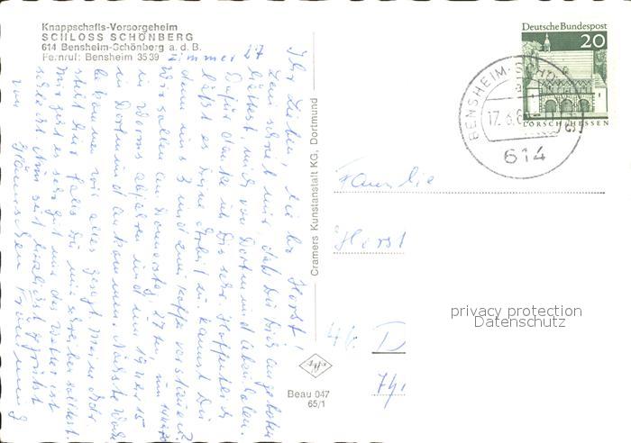 72180967 alte Postkarte Schoenberg Bensheim Knappschafts Vorsorgeheim Schloss Schoenberg postalisch gelaufen Erhaltung siehe scans KatCode: 11110006431002
