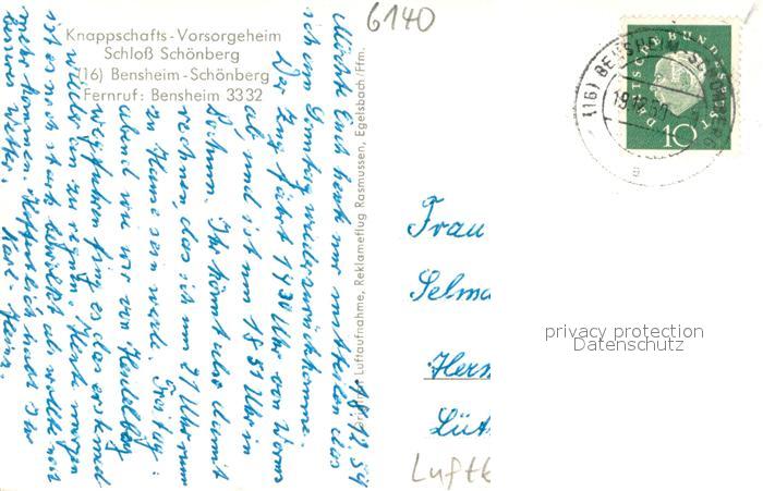 73692987 alte Postkarte Schoenberg Bensheim Schloss Schoenberg postalisch gelaufen Fliegeraufnahme Erhaltung siehe scans [WerneD78] KatCode: 11110006431002