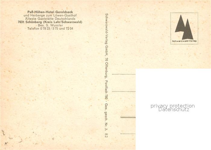 73013480 Schoenberg Gengenbach Pass-Hoehen-Hotel Geroldseck postalisch nicht gelaufen Erhaltung siehe scans [NatalD47] KatCode: 11110008317034