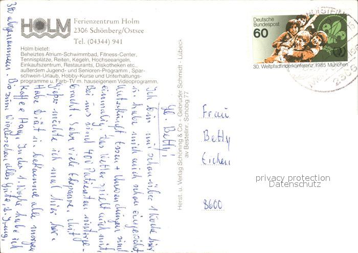 72392552 alte Postkarte Schoenberg Holstein Ferienzentrum Holm postalisch gelaufen Erhaltung siehe scans KatCode: 11110001057073