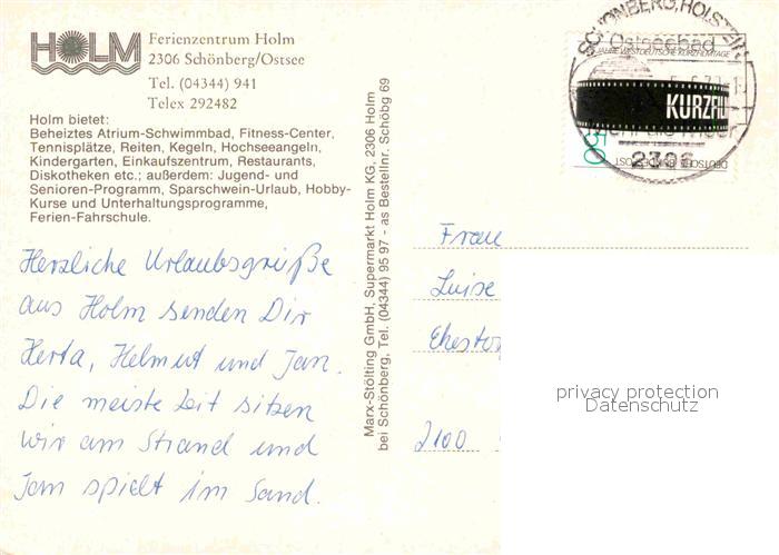 72871252 alte Postkarte Schoenberg Holstein Ferienzentrum Holm postalisch gelaufen Erhaltung siehe scans [NatalD47] KatCode: 11110001057073