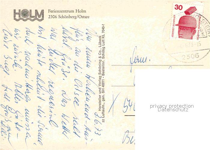 72869399 alte Postkarte Schoenberg Holstein Ferienzentrum Holm postalisch gelaufen Erhaltung siehe scans [NatalD47] KatCode: 11110001057073