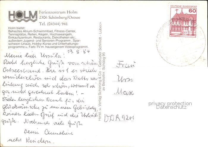 72305789 alte Postkarte Schoenberg Holstein Ferienzentrum Holm Panorama Strandpartie postalisch gelaufen Erhaltung siehe scans KatCode: 11110001057073
