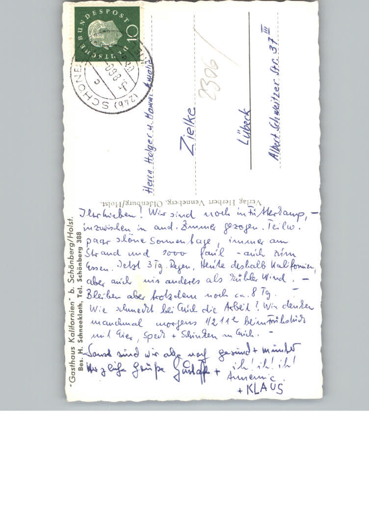 31120101 Schoenberg Holstein Gasthaus Kalifornien postalisch nicht gelaufen KatCode: 11110001057073