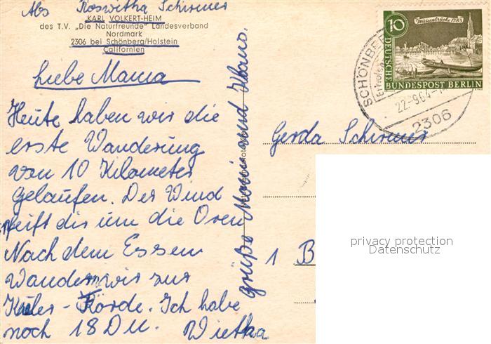 43505998 alte Postkarte Schoenberg Holstein Karl Volkert Heim Naturfreundehaus postalisch gelaufen Erhaltung siehe scans [KathaD81] KatCode: 11110001057073