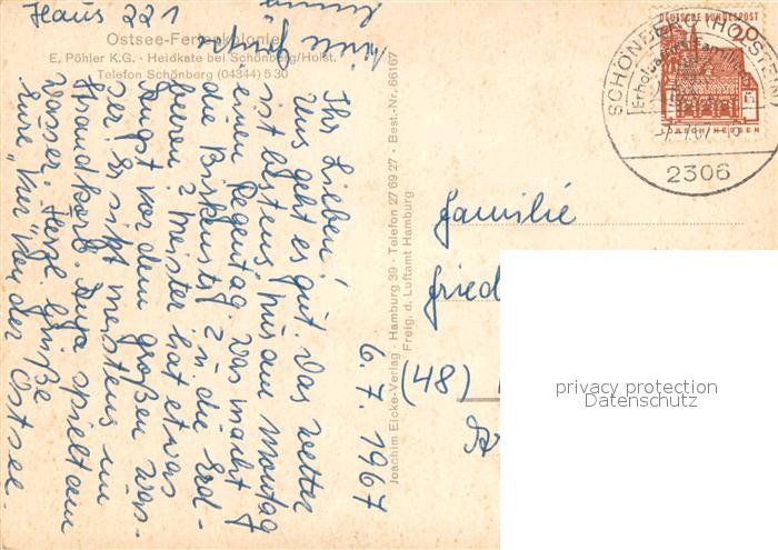 73642537 alte Postkarte Schoenberg Holstein Ostsee Ferienkolonie Heidkate Fliegeraufnahme postalisch gelaufen Erhaltung siehe scans [WerneD78] KatCode: 11110001057073