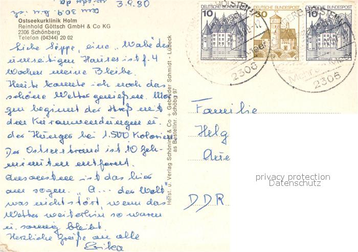 73683775 alte Postkarte Schoenberg Holstein Ostseekurklinik Holm postalisch gelaufen Erhaltung siehe scans [LiesaD40] KatCode: 11110001057073