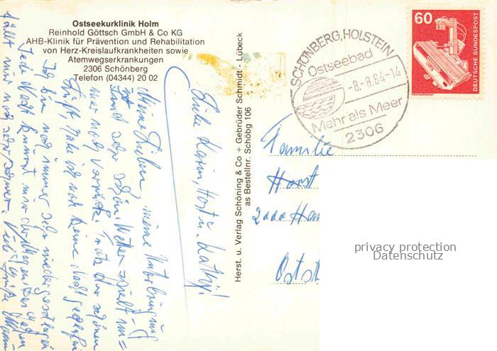 74043067 alte Postkarte Schoenberg Holstein Ostseekurklinik HolmHallenbad Med Anwengung Panorama Speiseraum postalisch gelaufen Erhaltung siehe scans [WerneD78] KatCode: 11110001057073