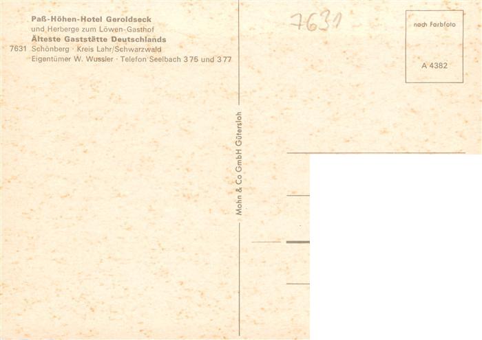 73884055 Schoenberg Lahr Pass Hoehen Hotel Geroldseck postalisch nicht gelaufen Erhaltung siehe scans [FriedD77] Frie Katcode 11110008317065