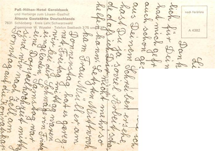 73899196 Schoenberg Lahr Passhoehenhotel Geroldseck im Schwarzwald postalisch nicht gelaufen Erhaltung siehe scans [FriedD77] Frie Katcode 11110008317065