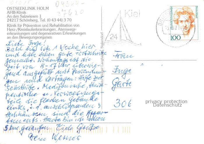 74095571 alte Postkarte Schoenberg Ostseebad Ostseeklinik Holm AHB Klinik postalisch gelaufen Erhaltung siehe scans [IrynaD87] KatCode: 11110001057073