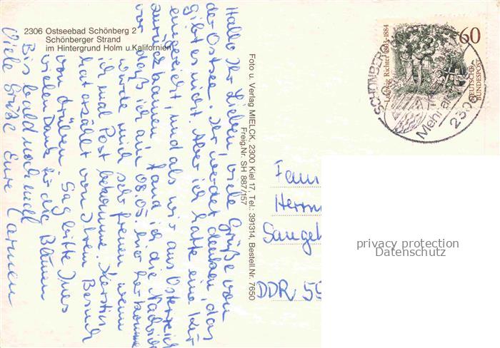 74027153 alte Postkarte Schoenberg Ostseebad Panorama Schoenberger Strand im Hintergrund Holm und Kalifornien postalisch gelaufen Fliegeraufnahme Erhaltung siehe scans [FriedD77] KatCode: 11110001057073