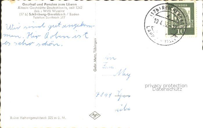 31704384 alte Postkarte Schoenberg Seelbach Gasthof Pension zum Loewen postalisch gelaufen Erhaltung siehe scans KatCode: 11110008317127