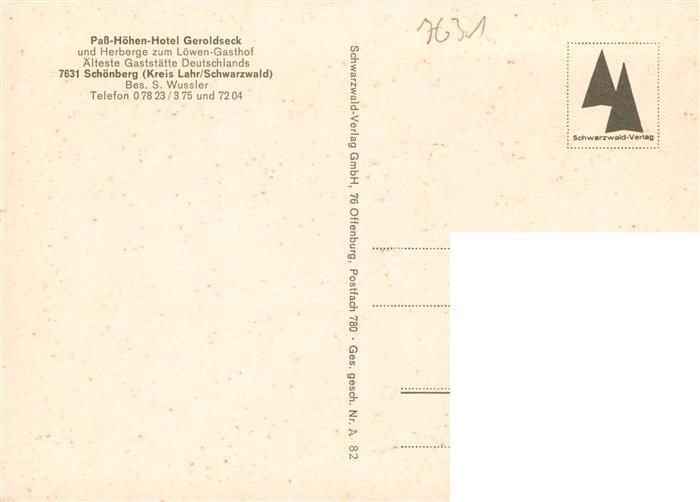 73931527 Schoenberg Seelbach Pass Hoehenhotel Geroldseck postalisch nicht gelaufen Erhaltung siehe scans [WerneD78] KatCode: 11110008317127