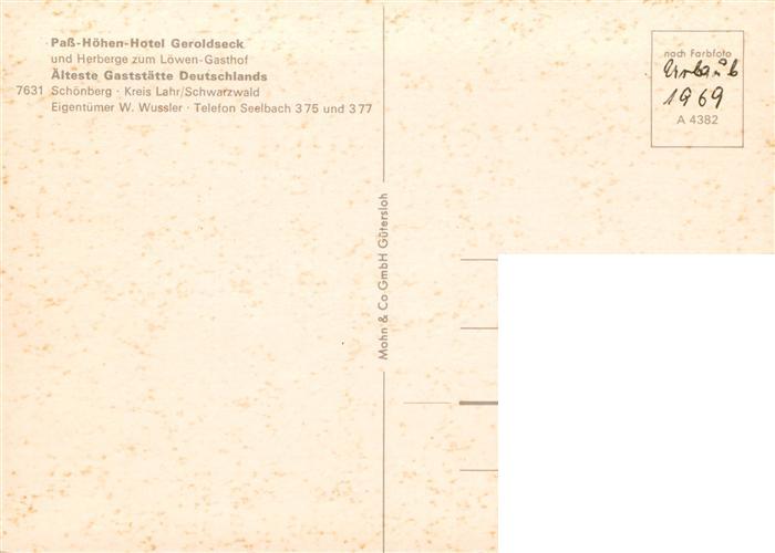 73931441 Schoenberg Seelbach Pass Hoehenhotel Geroldseck postalisch nicht gelaufen Erhaltung siehe scans [WerneD78] KatCode: 11110008317127