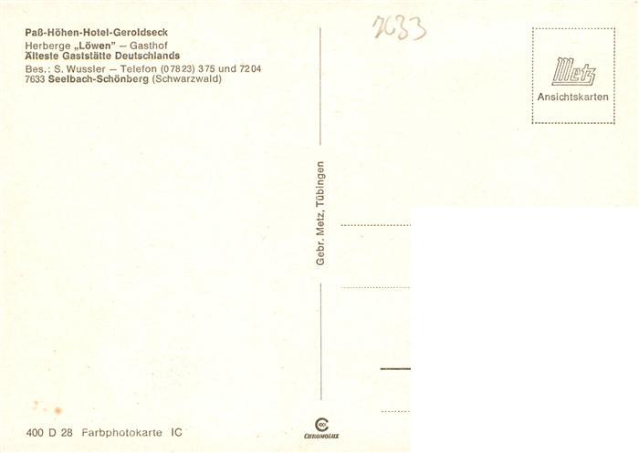 73931510 Schoenberg Seelbach Pass Hoehenhotel Geroldseck Gastraum postalisch nicht gelaufen Erhaltung siehe scans [WerneD78] KatCode: 11110008317127