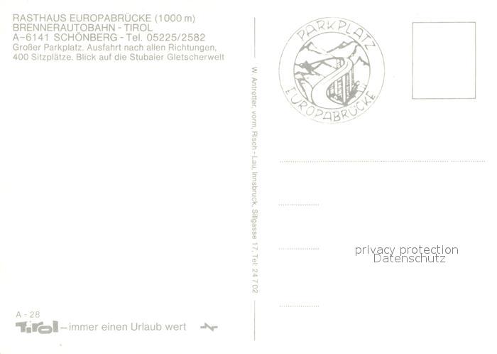 13035330 Schoenberg Stubaital Rasthaus Europabruecke Brennerautobahn postalisch nicht gelaufen Erhaltung siehe scans [WerneD78] KatCode: 11390332070350