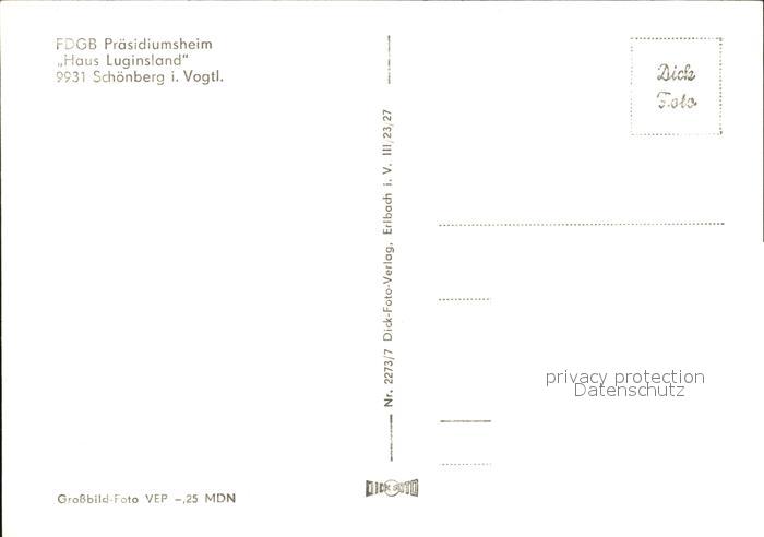 72476448 Schoenberg Vogtland FDGB Praesidium Haus Luginsland postalisch nicht gelaufen Erhaltung siehe scans KatCode: 11110014178350