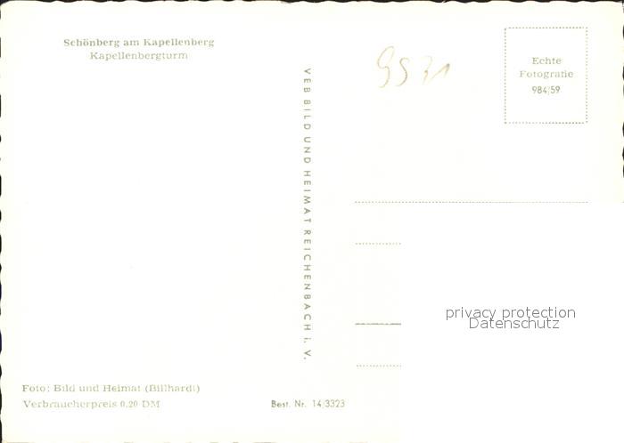 71951168 Schoenberg Vogtland Kapellenbergturm postalisch nicht gelaufen Erhaltung siehe scans KatCode: 11110014178350