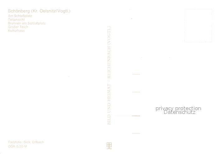 73108082 Schoenberg Vogtland Schlossplatz Brunnen Grosser Teich Kulturhaus postalisch nicht gelaufen Erhaltung siehe scans [KathaD81] KatCode: 11110014178350