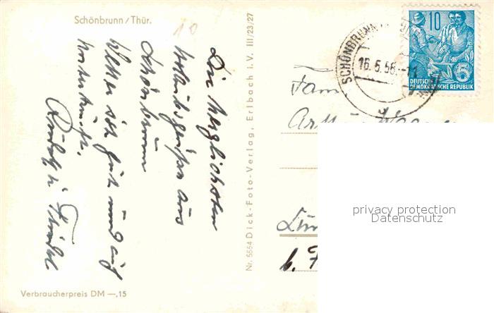72699740 alte Postkarte Schoenbrunn Schleusegrund postalisch gelaufen Erhaltung siehe scans [LiesaD40] KatCode: 11110016069042