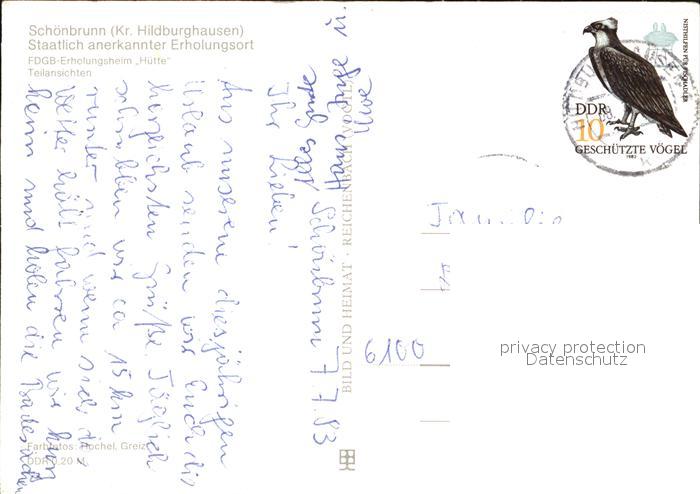 72458105 alte Postkarte Schoenbrunn Schleusegrund FDGB Erholungsheim Huette Ortspartie postalisch gelaufen Erhaltung siehe scans KatCode: 11110016069042