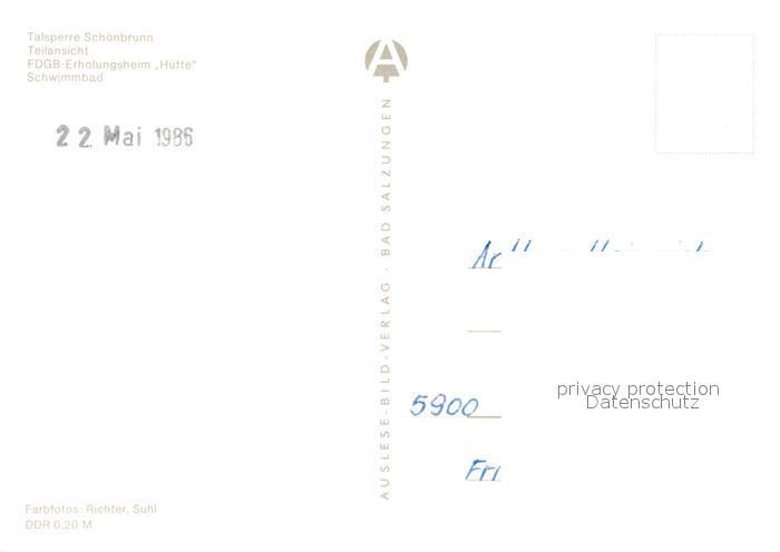 72972778 Schoenbrunn Schleusegrund Talsperre Schoenbrunn Teilansicht FDGB Erholungsheim Huette Schwimmbad postalisch nicht gelaufen Erhaltung siehe scans [FriedD77] KatCode: 11110016069042