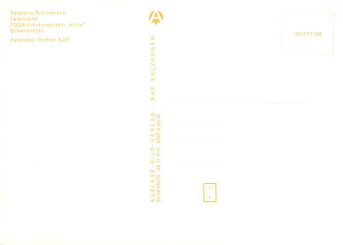 73905034 Schoenbrunn Schleusegrund Talsperre Teilansicht FDGB Erholungsheim Huette Schwimmbad postalisch nicht gelaufen Erhaltung siehe scans [WerneD78] KatCode: 11110016069042