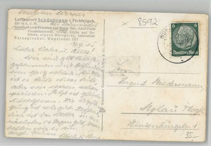 Schoenbrunn Wunsiedel asthaus Burg x 1941
