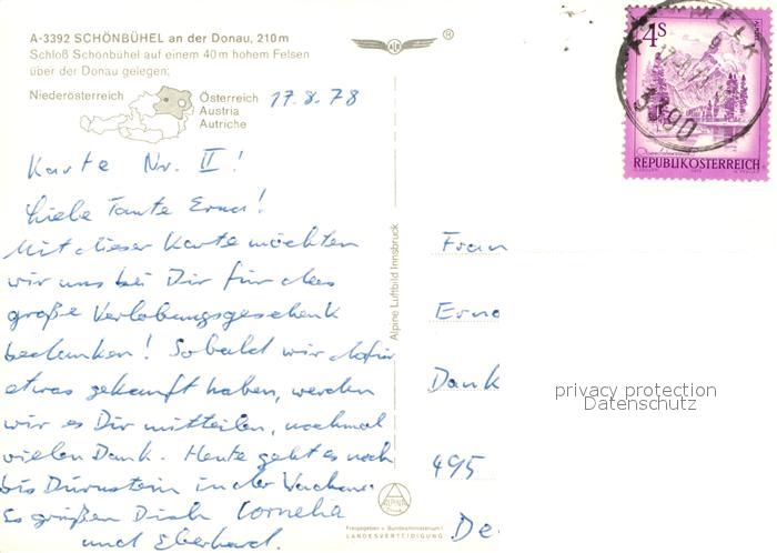 73521432 alte Postkarte Schoenbuehel-Aggsbach Schloss Schoenbuehel Fliegeraufnahme postalisch gelaufen Erhaltung siehe scans [WerneD78] KatCode: 11390121031542