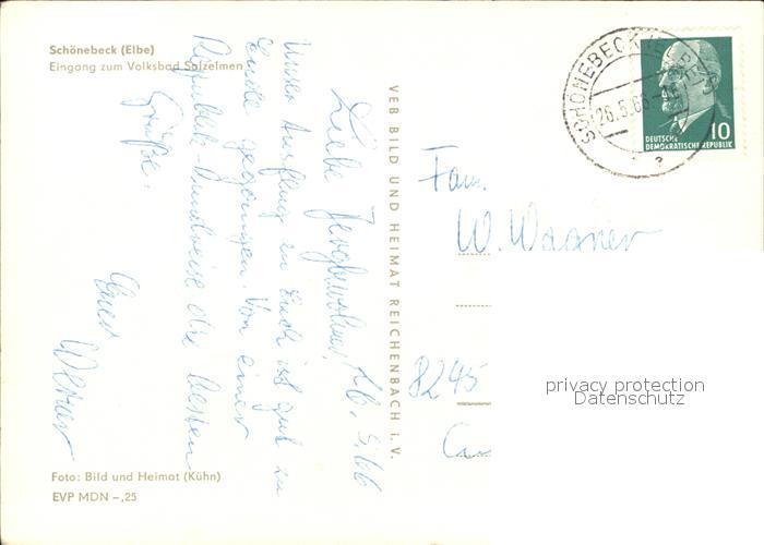 72474201 alte Postkarte Schoenebeck Elbe Eingang zum Volksbad Salzelmen postalisch gelaufen Erhaltung siehe scans KatCode: 11110015089305
