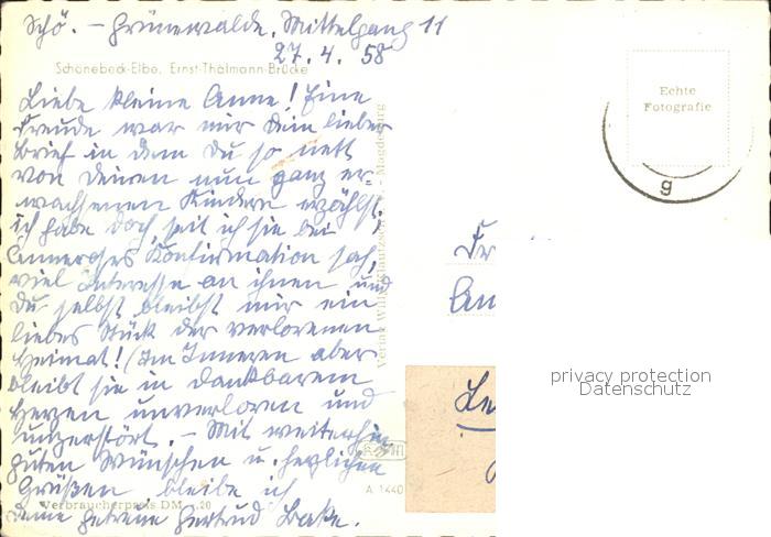 72135253 alte Postkarte Schoenebeck Elbe Ernst Thaelmann Bruecke postalisch gelaufen Erhaltung siehe scans KatCode: 11110015089305