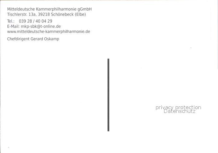 72481966 Schoenebeck Elbe Mitteldeutsche Kammerphilharmonie postalisch nicht gelaufen Erhaltung siehe scans KatCode: 11110015089305