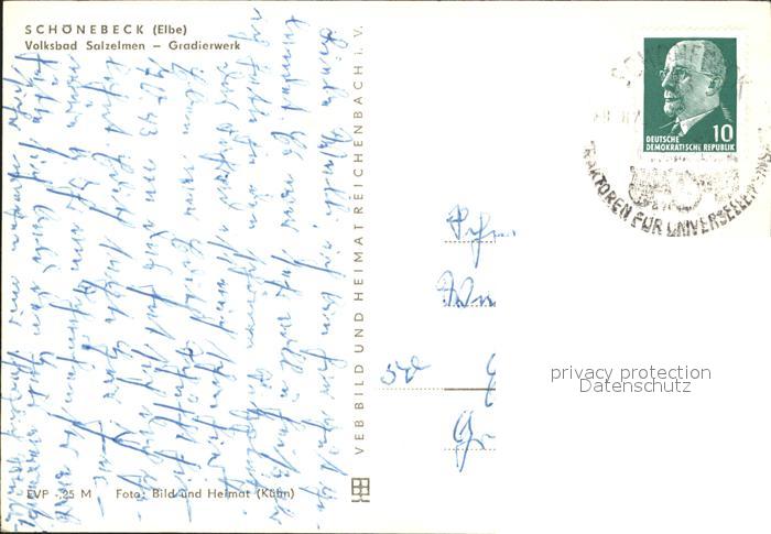 72273420 alte Postkarte Schoenebeck Elbe Volksbad Salzelmen Gradierwerk postalisch gelaufen Erhaltung siehe scans KatCode: 11110015089305