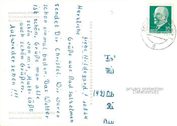 73132336 alte Postkarte Schoenebeck Elbe Volksbad Salzelmen Kurhaus postalisch gelaufen Erhaltung siehe scans [FriedD77] KatCode: 11110015089305