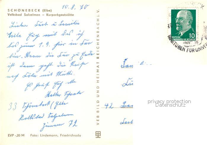 73164474 alte Postkarte Schoenebeck Elbe Volksbad Salzelmen Kurparkgaststaette postalisch gelaufen Erhaltung siehe scans [KathaD81] KatCode: 11110015089305