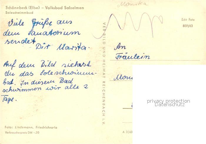 73093182 Schoenebeck Elbe Volksbad Salzelmen postalisch nicht gelaufen Erhaltung siehe scans [LiesaD40] KatCode: 11110015089305