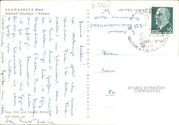 72168859 alte Postkarte Schoenebeck Elbe Volksbad Sazelmen Kurhaus postalisch gelaufen Erhaltung siehe scans KatCode: 11110015089305