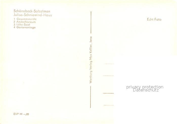 73102496 Schoenebeck Salzelmen Julius Schniewind Haus Andachtsraum Loehe Saal Gartenanlage postalisch nicht gelaufen Erhaltung siehe scans [KathaD81] KatCode: 11110015089305