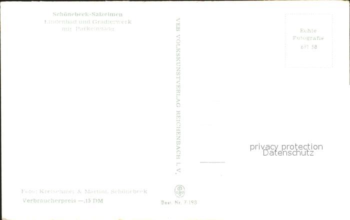 71925076 Schoenebeck Salzelmen Lindenbad Gradierwerk Parkeingang postalisch nicht gelaufen Erhaltung siehe scans KatCode: 11110015089305
