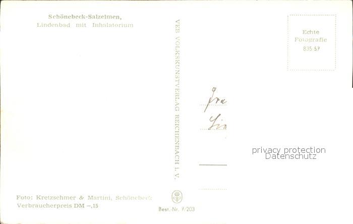 72436555 Schoenebeck Salzelmen Lindenbad mit Inhalatorium postalisch nicht gelaufen Erhaltung siehe scans KatCode: 11110015089305