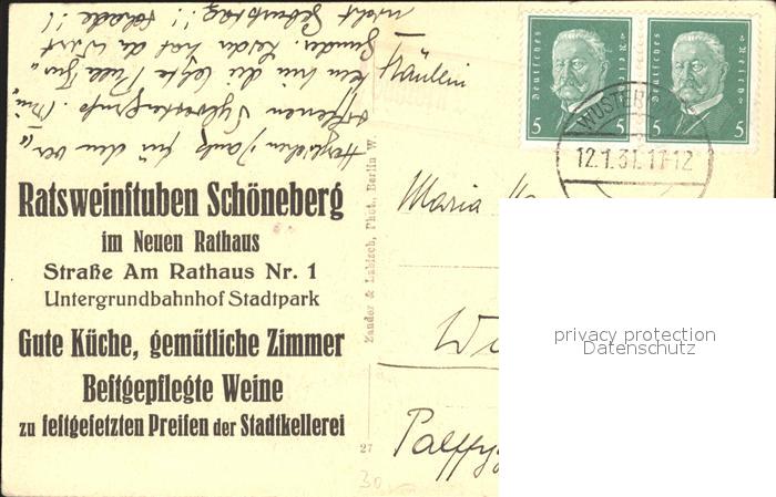 32186197 alte Postkarte Schoeneberg Berlin Ratsweinstuben postalisch gelaufen Erhaltung siehe scans KatCode: 11110011000000