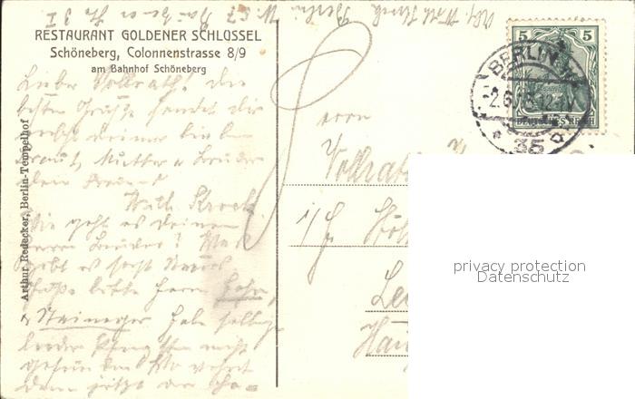 32185937 alte Postkarte Schoeneberg Berlin Restaurant Goldener Schluessel postalisch gelaufen Erhaltung siehe scans KatCode: 11110011000000