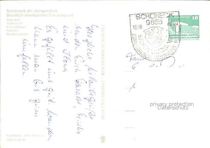 72411487 alte Postkarte Schoeneck Vogtland Alter Soell Teilansicht Krankenhaus Freibad Kinderkurheim postalisch gelaufen Erhaltung siehe scans KatCode: 11110014178610
