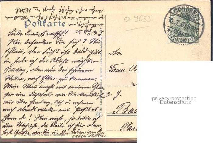 42268643 alte Postkarte Schoeneck Vogtland Blick vom Friedrich August Stein Kirche postalisch gelaufen Erhaltung siehe scans KatCode: 11110014178610